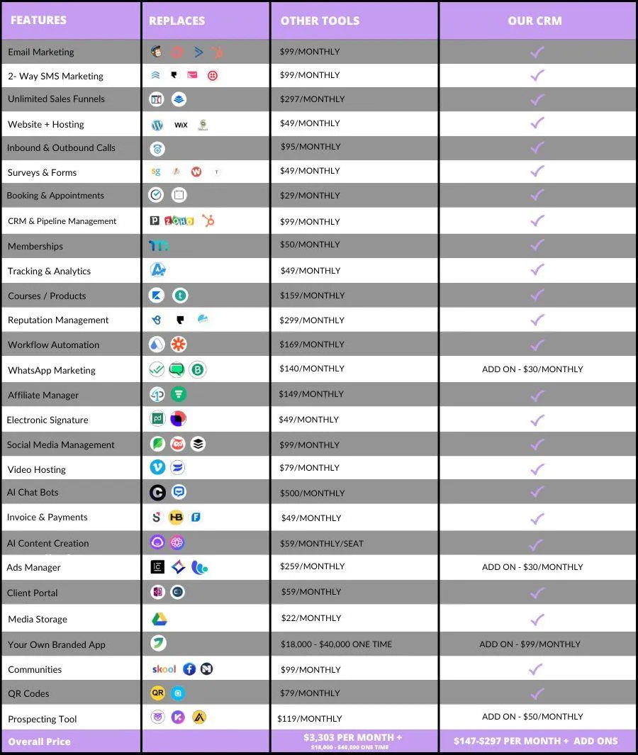 With our all-in-one marketing and sales platform, you will be able to keep your tools in one place (while saving a fortune) and streamline your entire delivery process so you can focus on keeping your clients and customers happy.